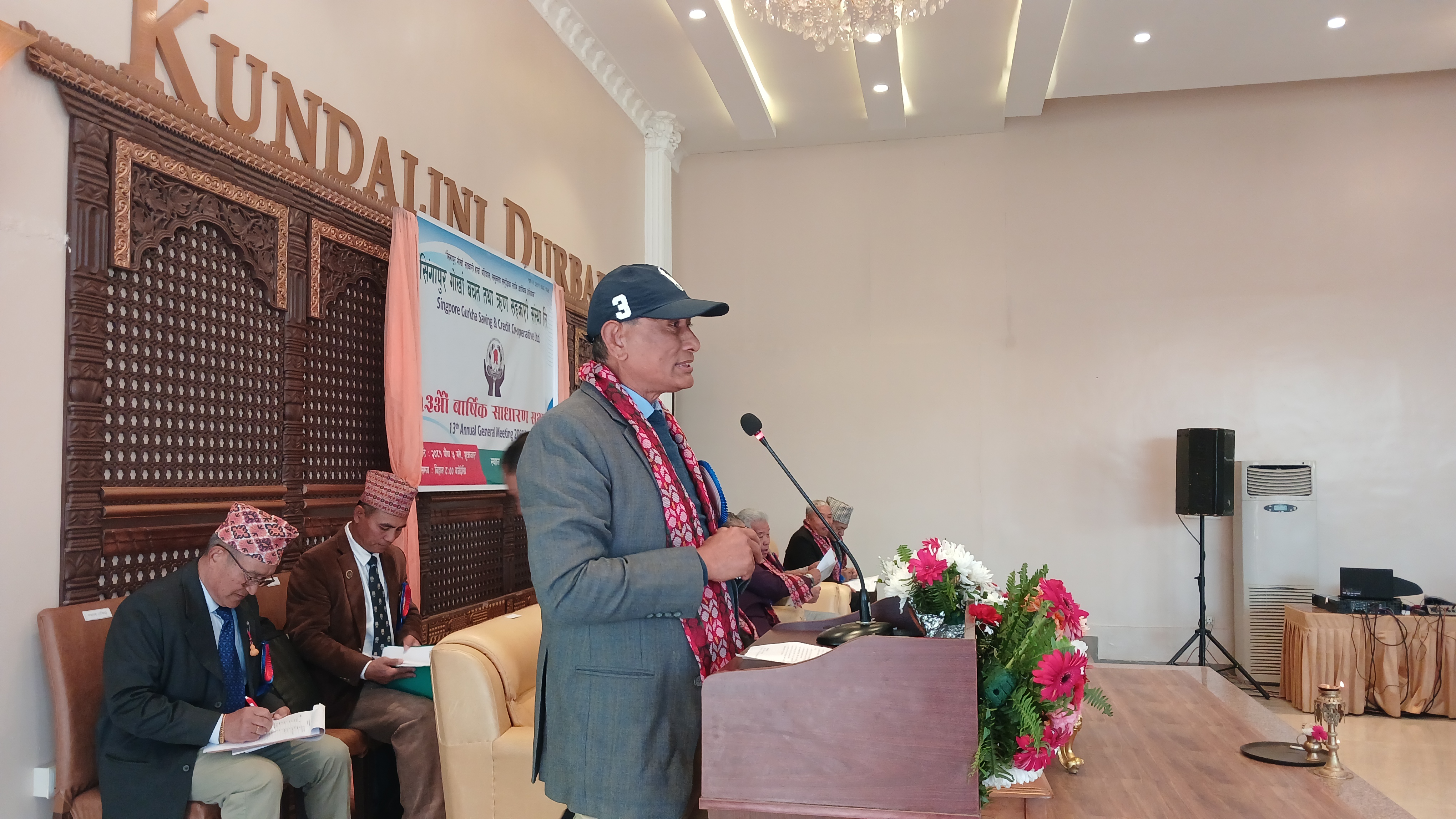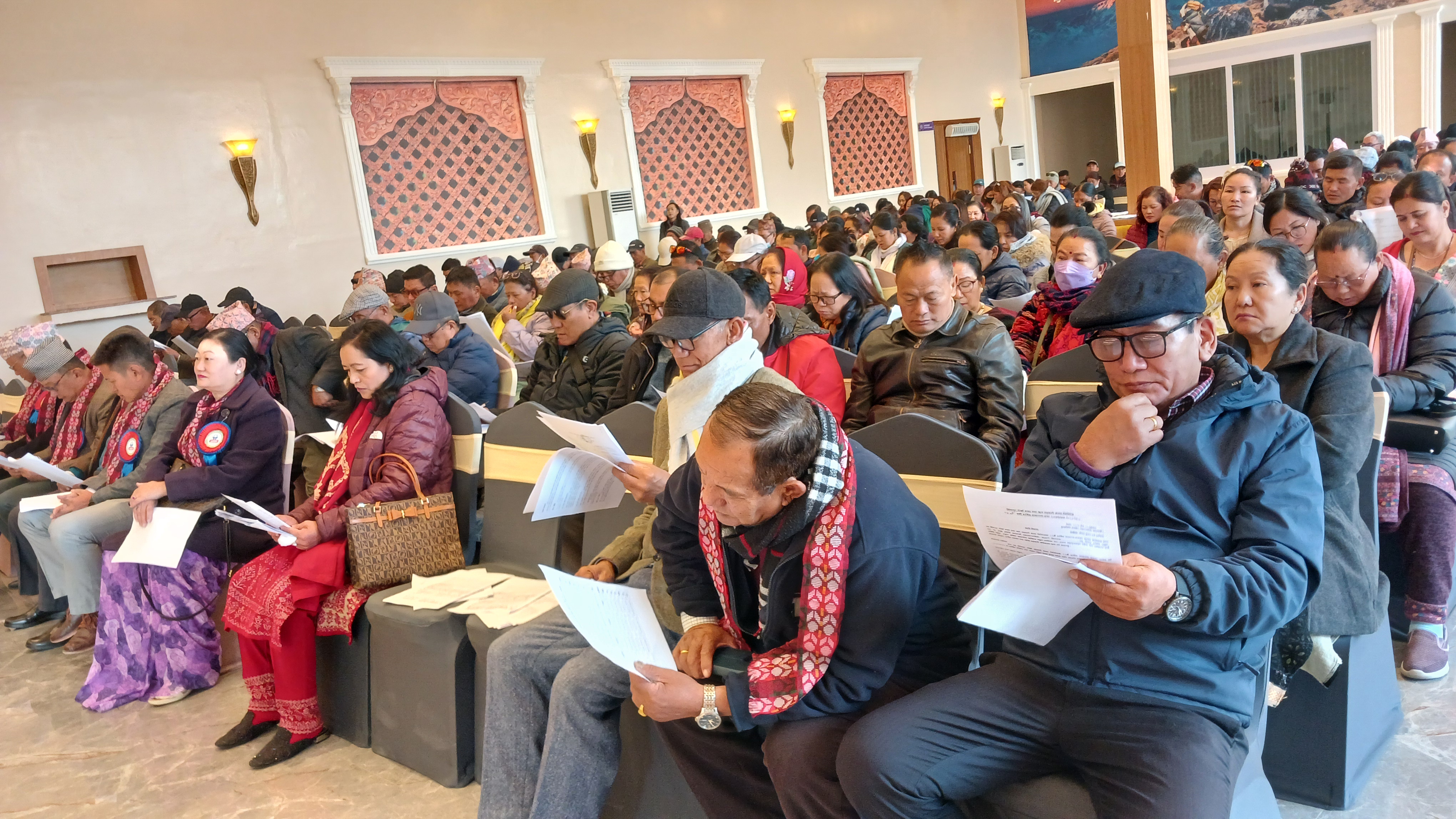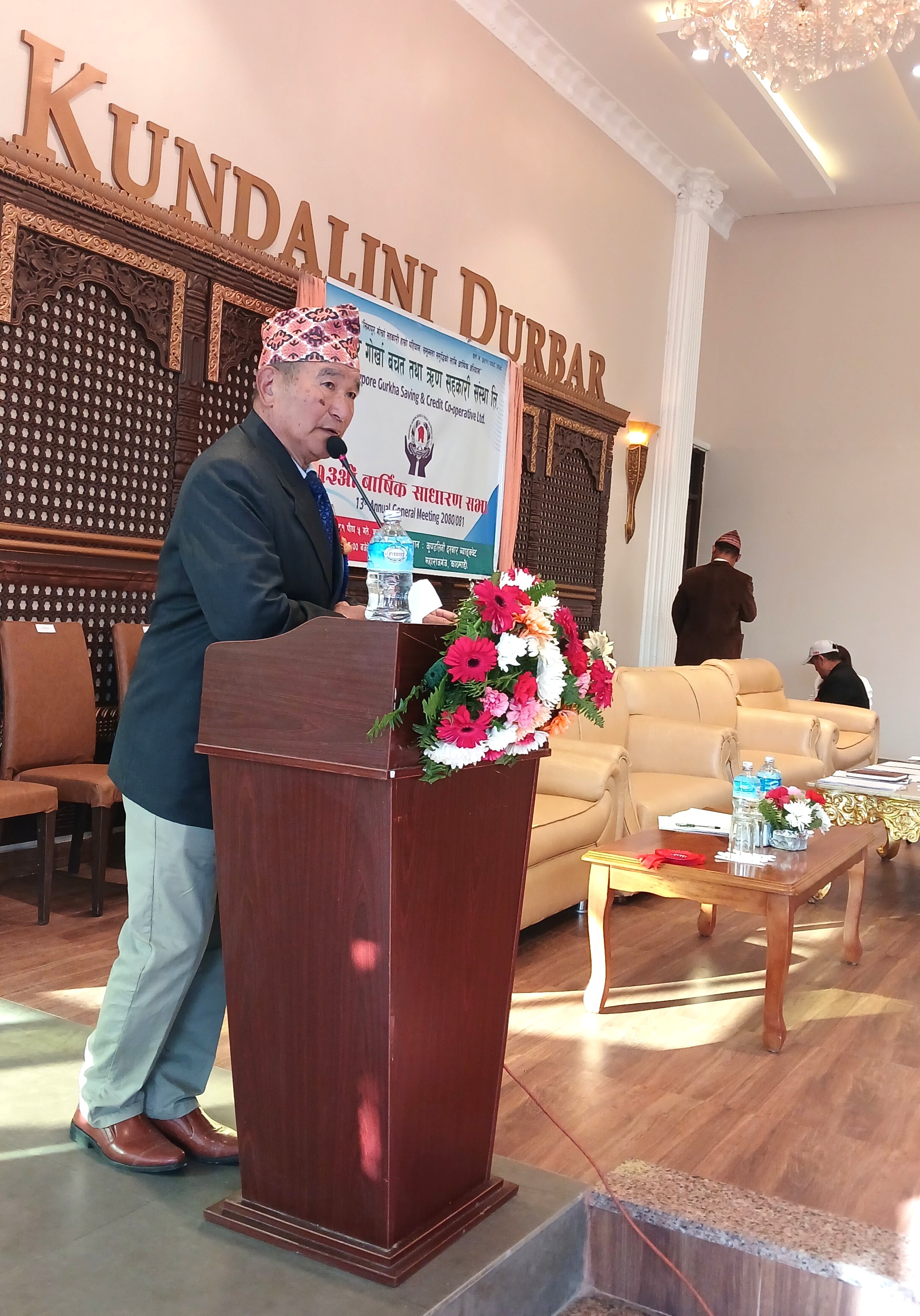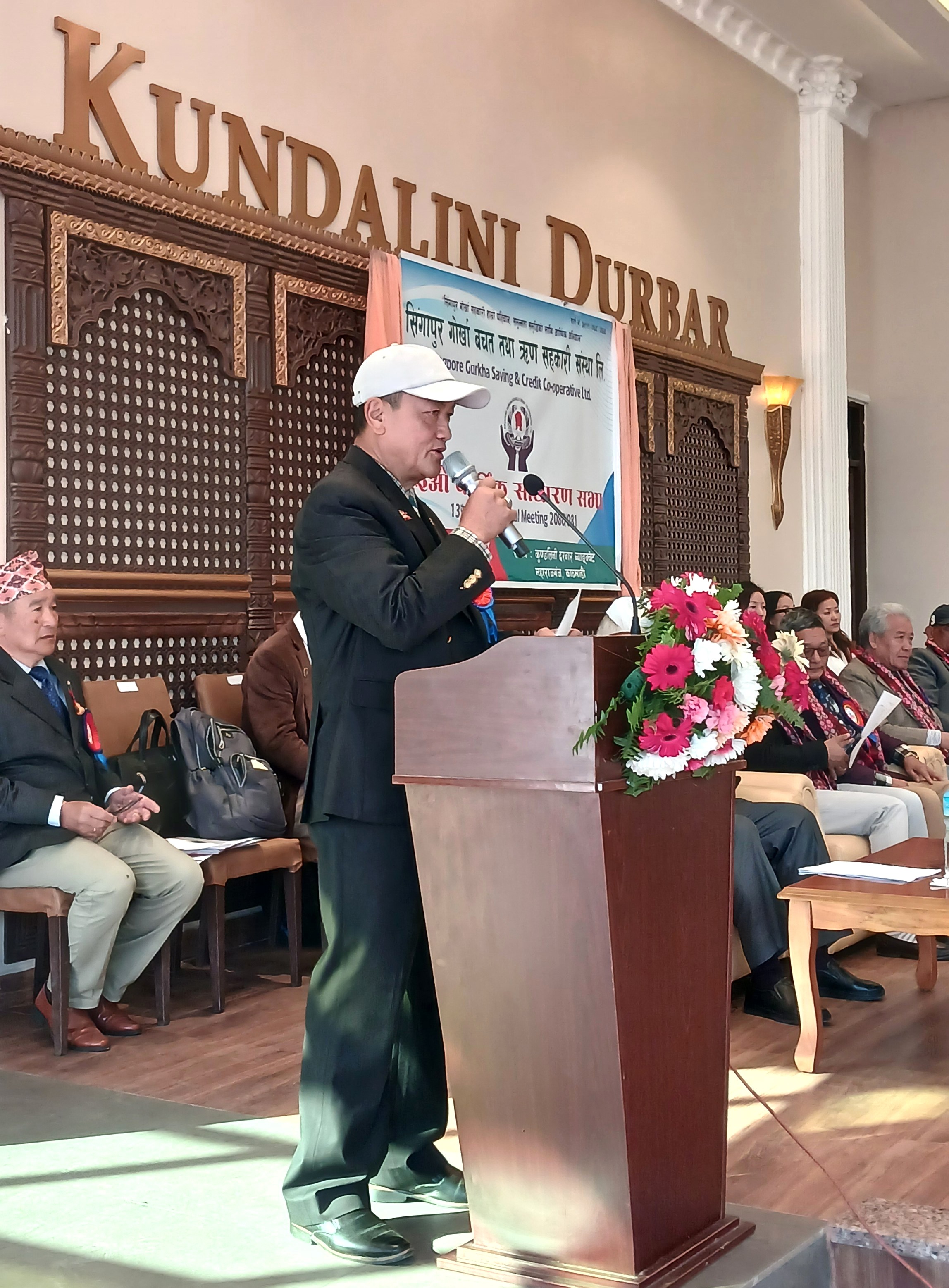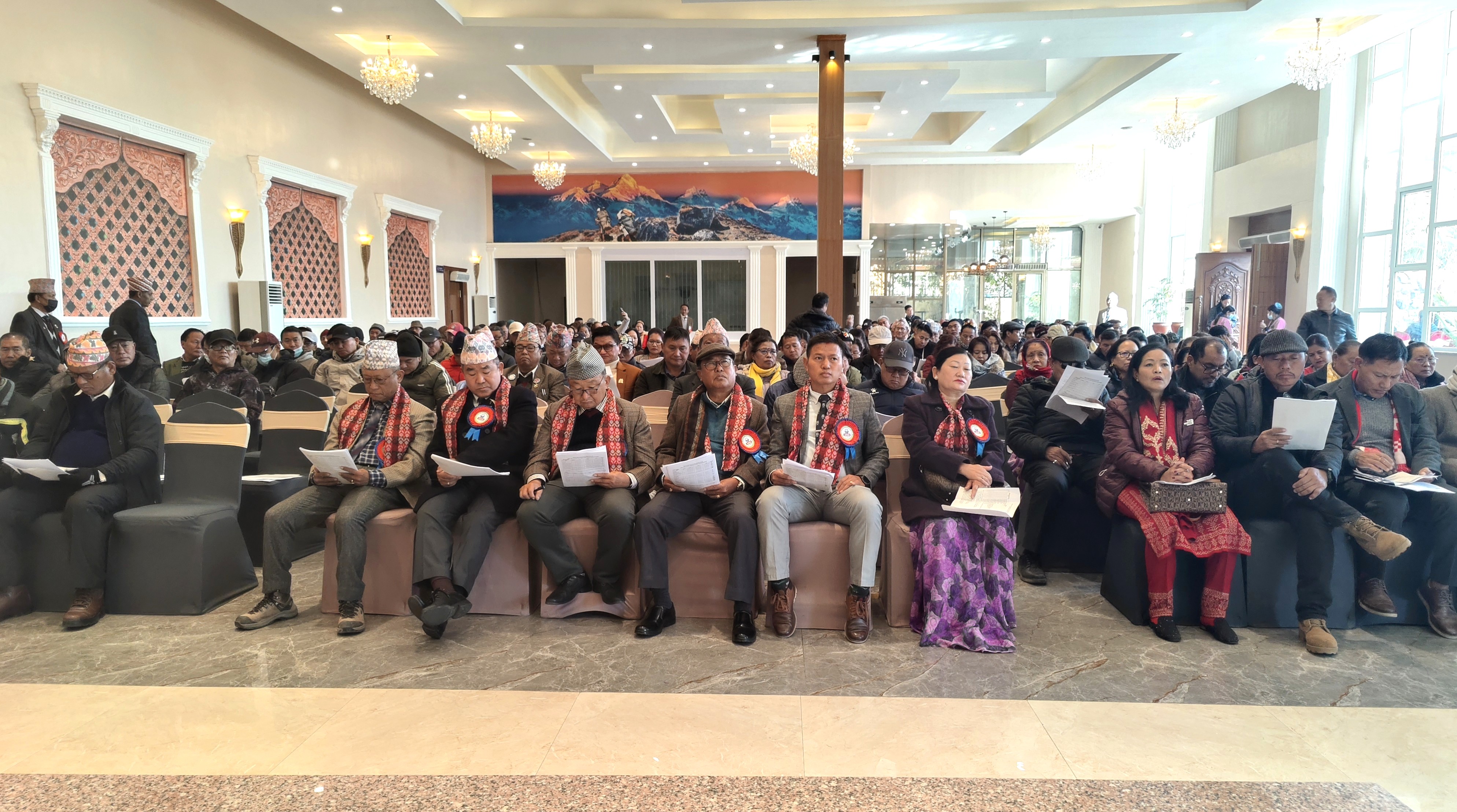 सभा स्थलमा आसन ग्रहणको लागी सम्बोधन गर्नुहुंदै संचालकज्यु।