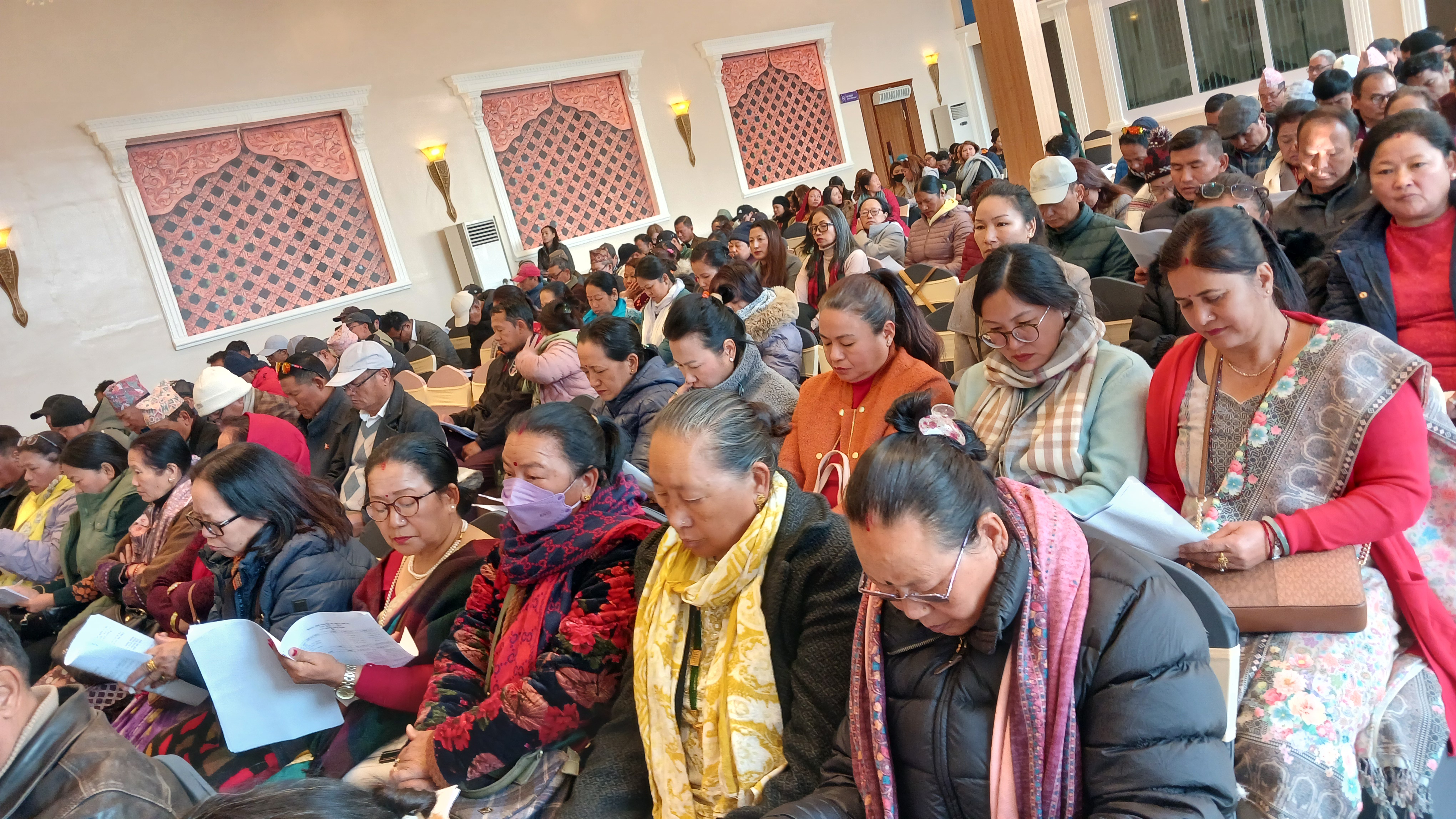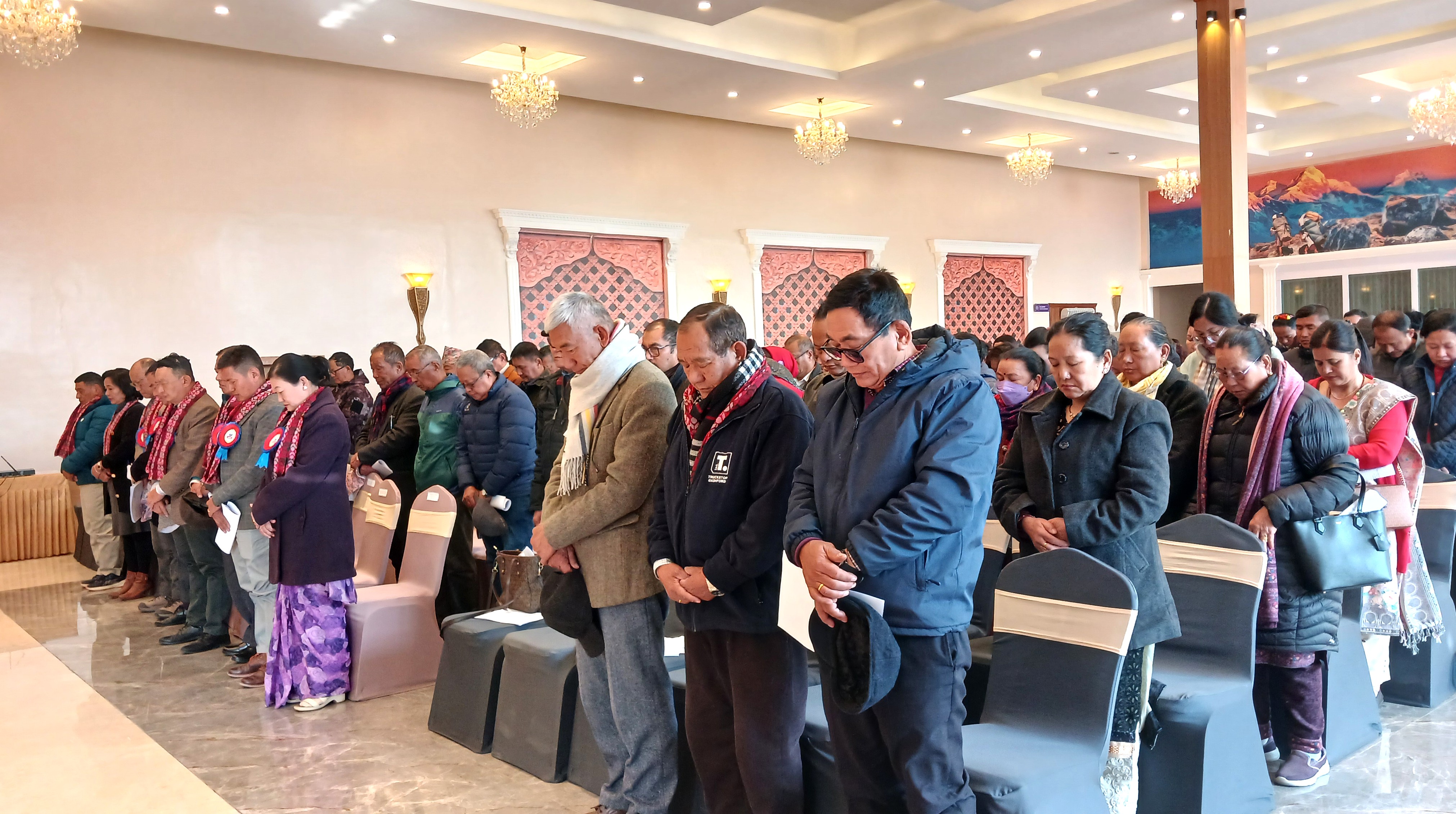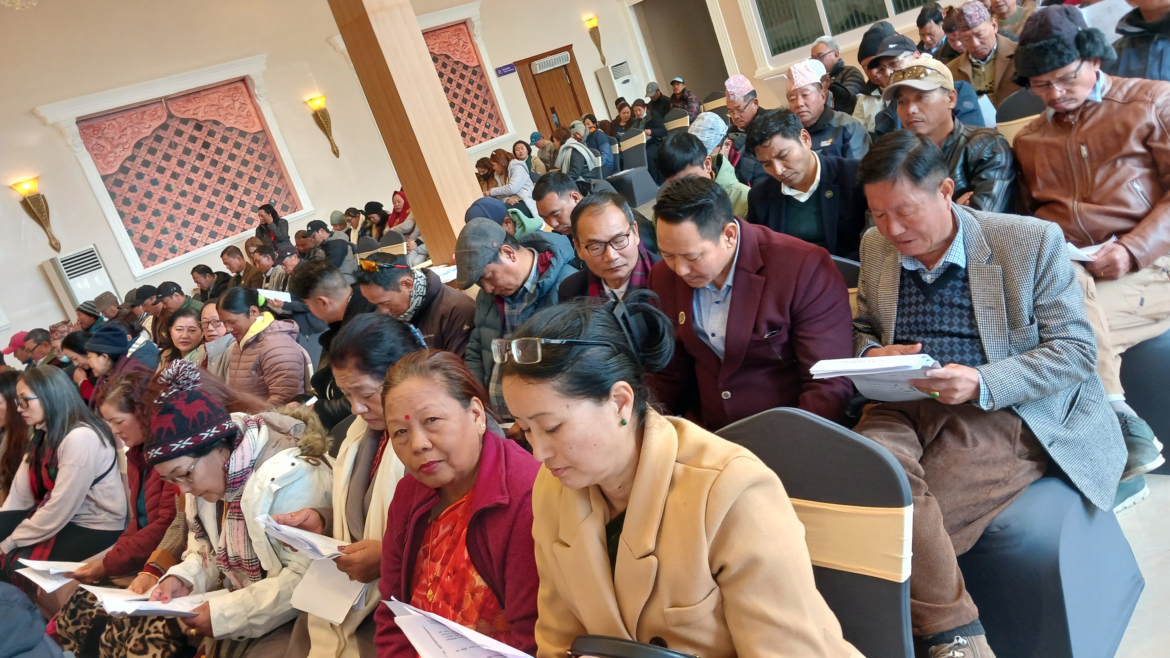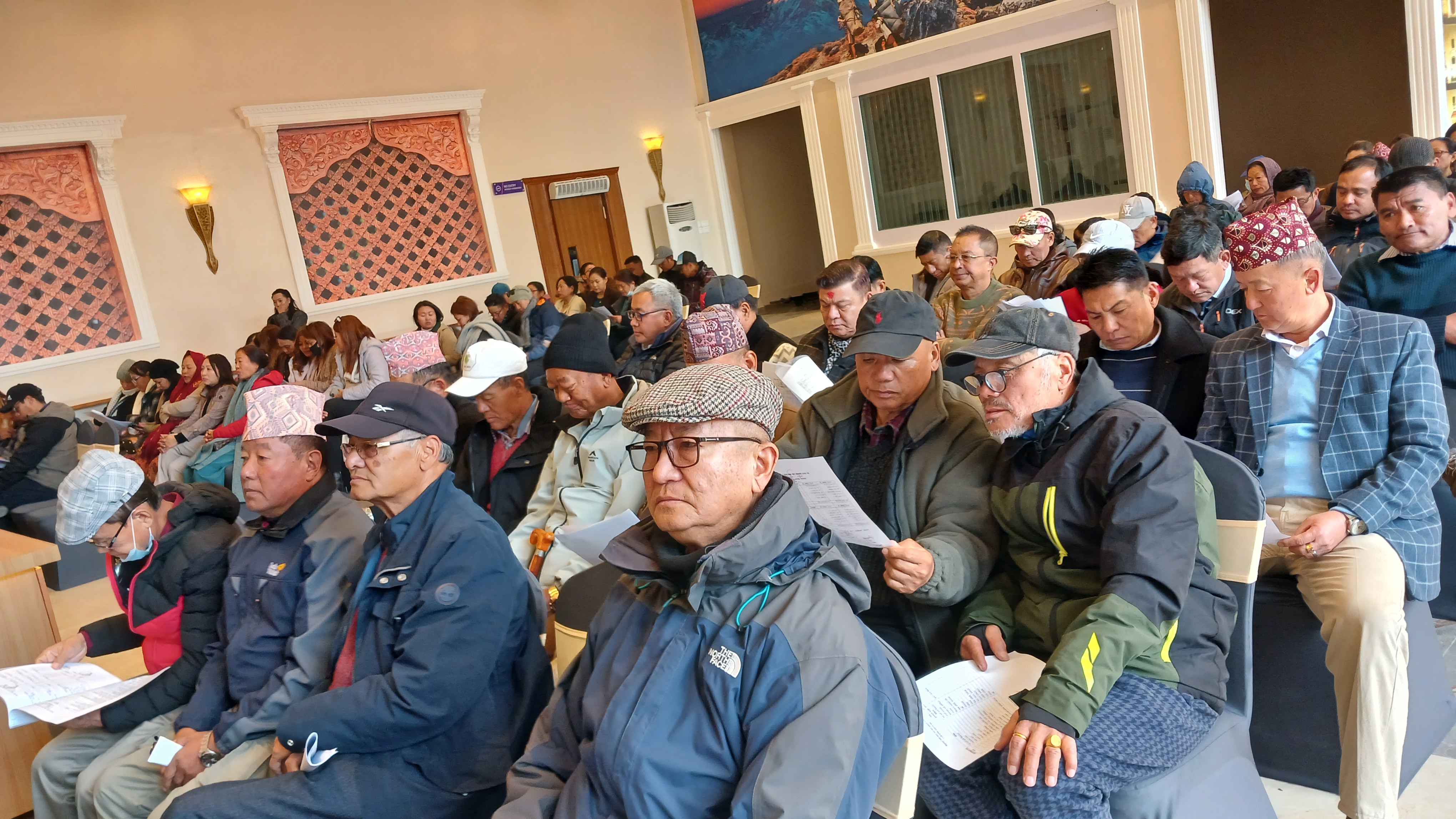 सभा स्थलमा आसन ग्रहणको लागी सम्बोधन गर्नुहुंदै संचालकज्यु।