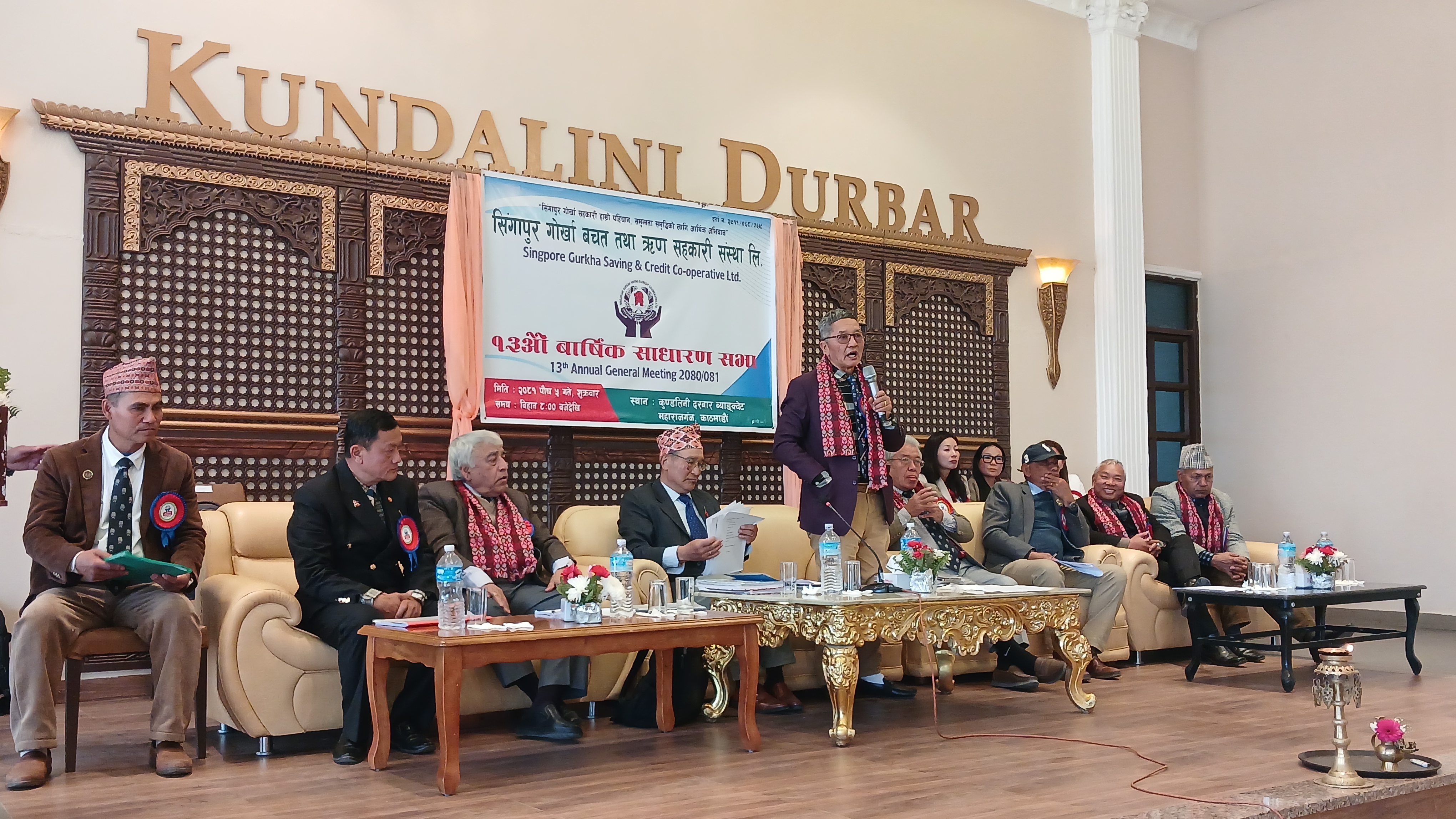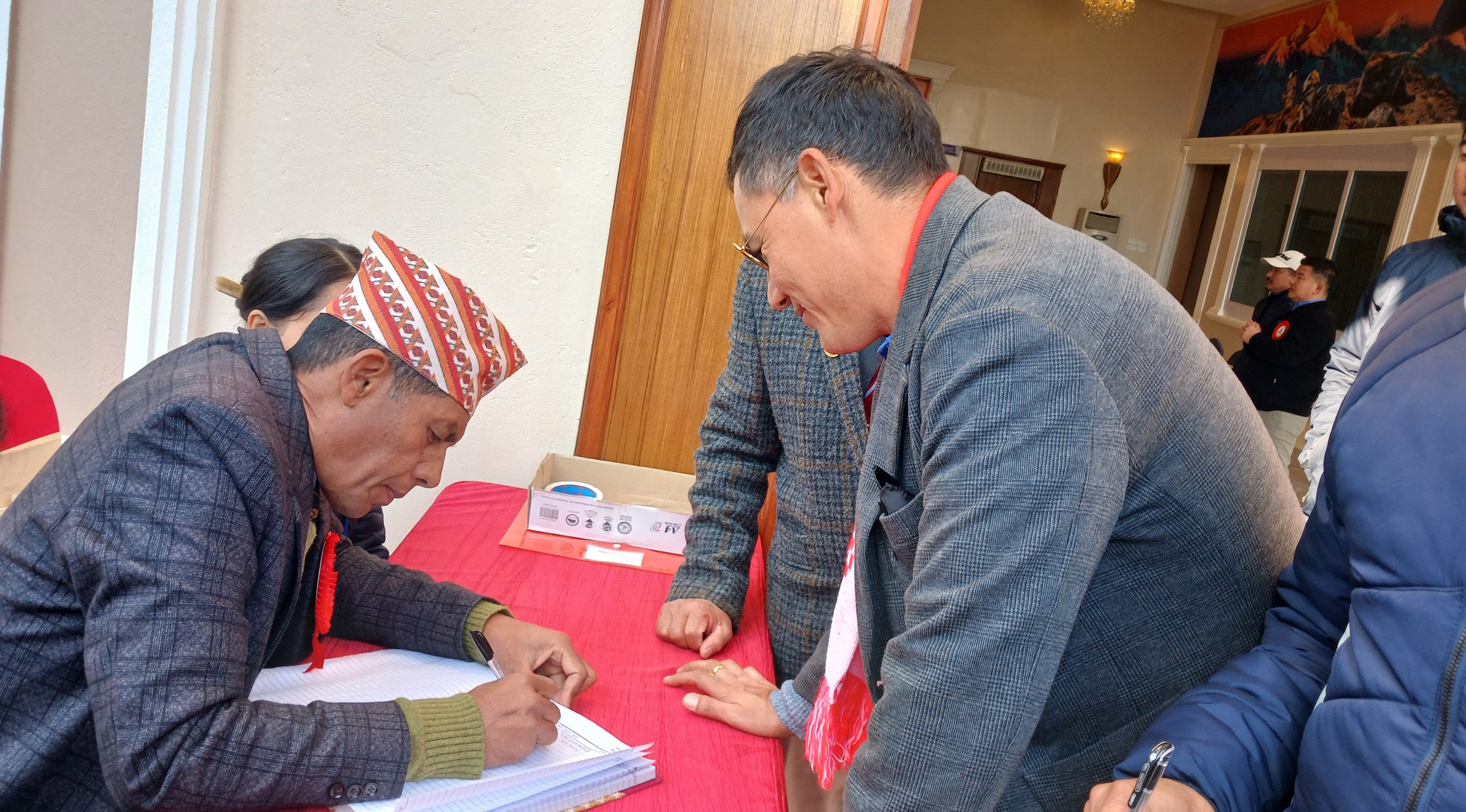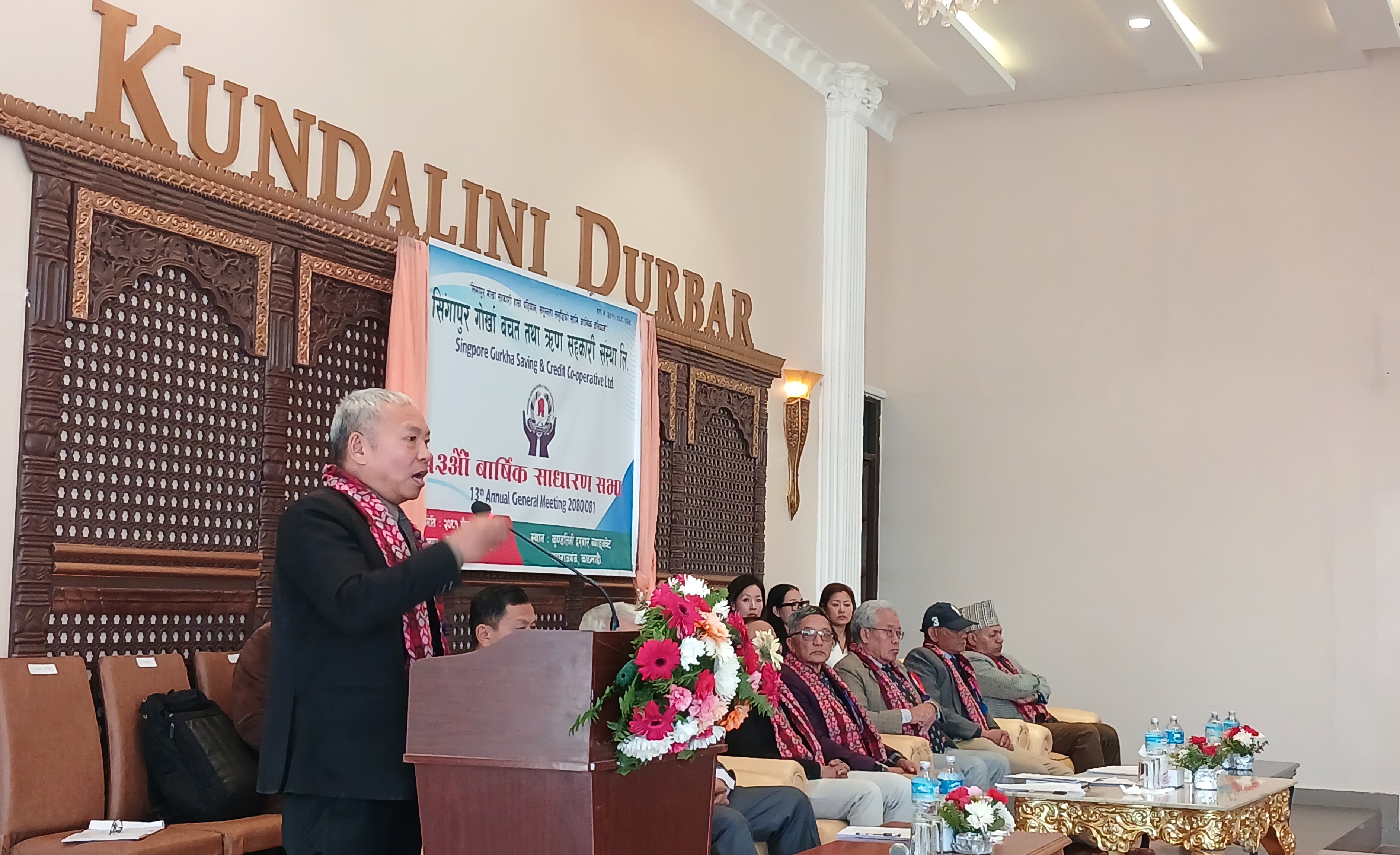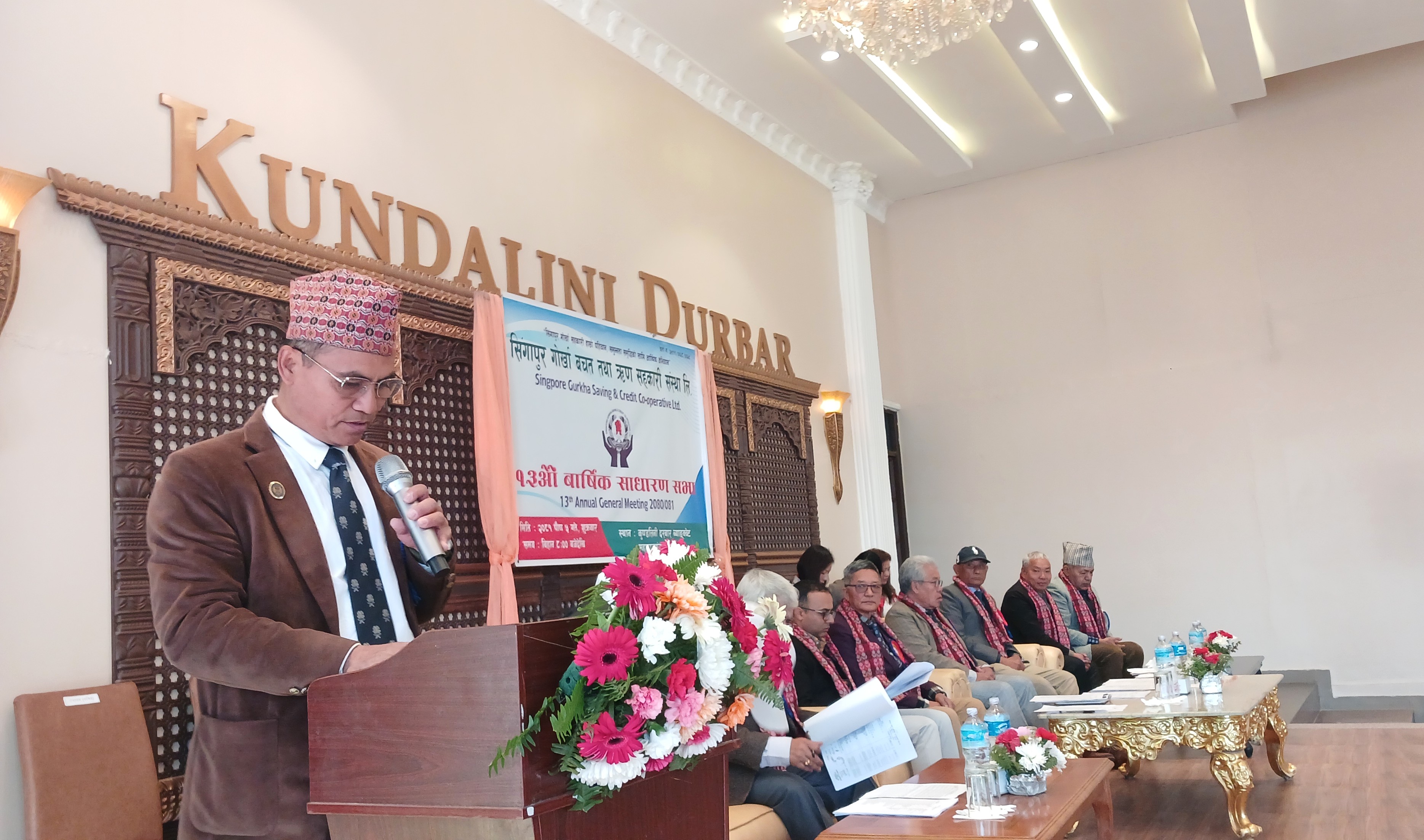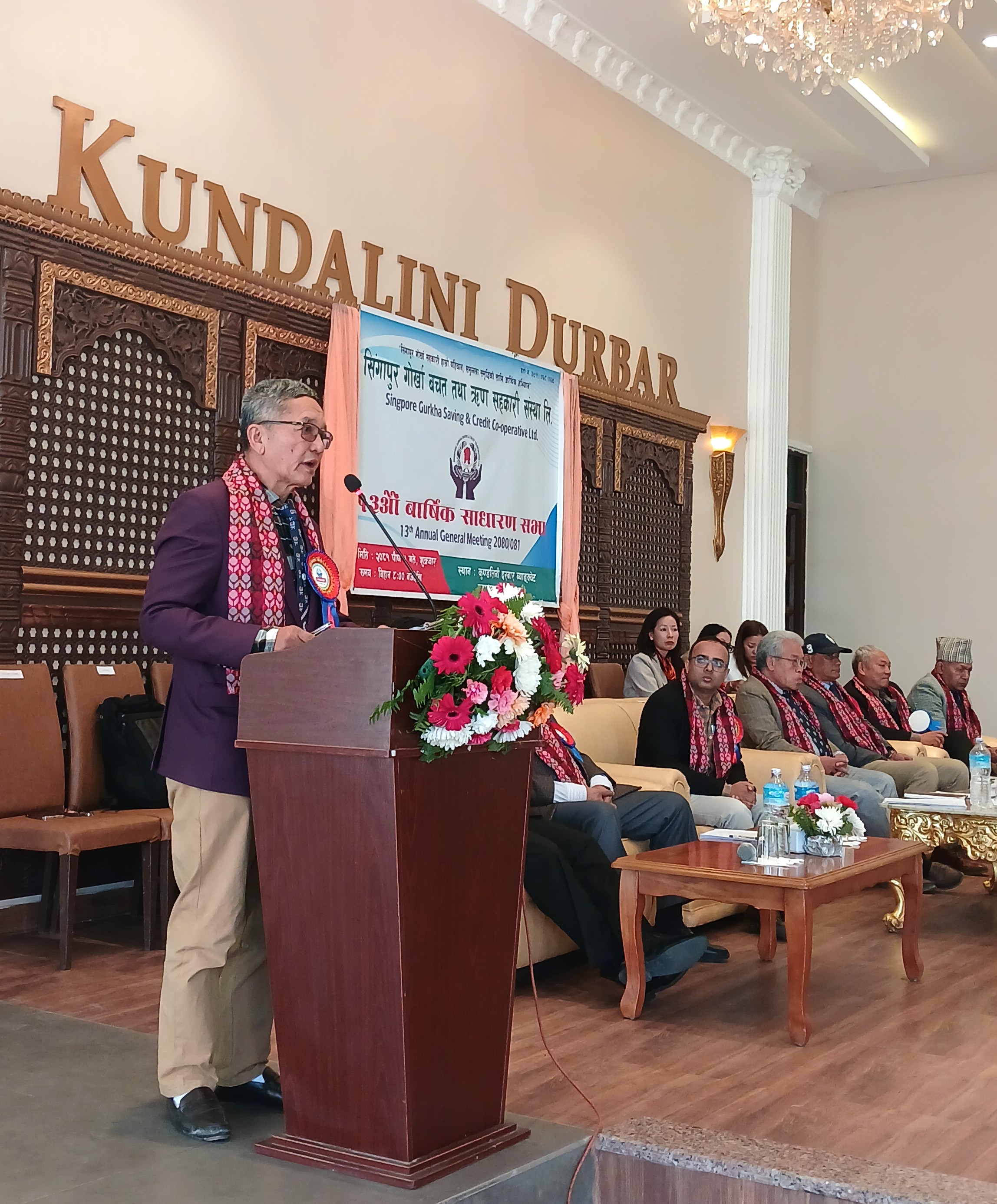 सभा स्थलमा आसन ग्रहणको लागी सम्बोधन गर्नुहुंदै संचालकज्यु।